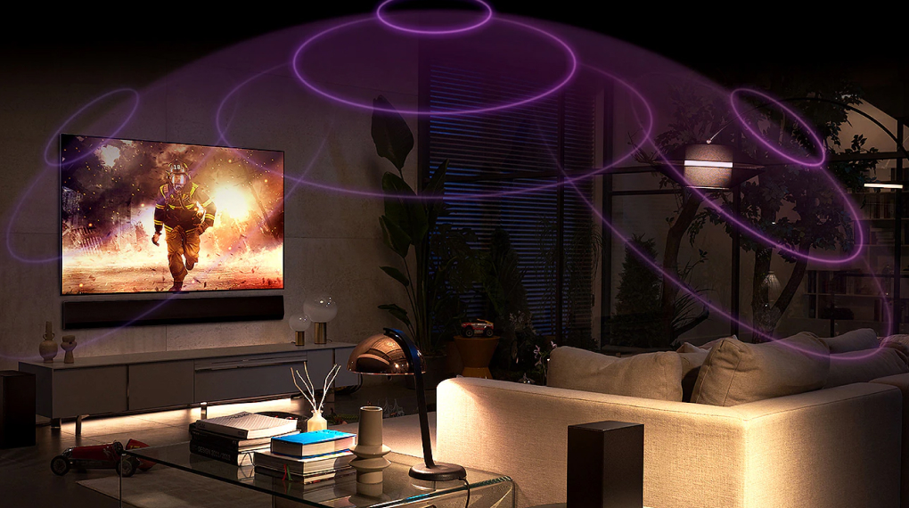 – Công nghệ Dolby Atmos đây là chuẩn âm thanh cao cấp nhất trên các dòng tivi hiện nay. Công nghệ này có khả năng phát ra mọi âm thanh của từng vật thể trong cùng 1 cảnh tại 1 thời điểm với không gian âm thanh đa chiều sống động mang đến trải nghiệm âm thanh mạnh mẽ như đang trôi xung quanh bạn.