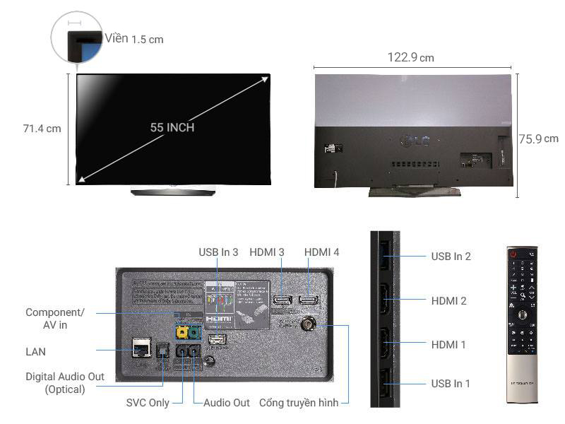 Với thiết kế siêu mỏng Blade Slim (do không có đèn nền phía sau), chiếc tivi LG 55 inch này chắc chắn sẽ là điểm nhấn đắt giá trong việc trang trí ngôi nhà bạn dù là khi treo tường hay để bàn.