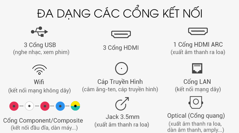 Màn hình tivi LG 55 inch thích hợp với những gian phòng rộng như phòng khách, phòng họp,…