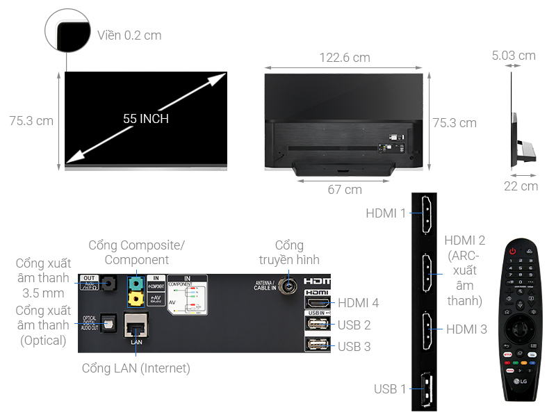 Smart Tivi OLED LG 4K 55 inch 55E9PTA với thiết kế viền siêu mỏng dễ dàng hòa hợp vào bất kỳ không gian nào như một bức tranh nghệ thuật trong nhà bạn, cho cảm giác sang trọng, tinh tế, làm nổi bật không gian phòng của bạn. Viền mỏng chỉ 0.2 cm, bằng 1/4 iPhone Xr.