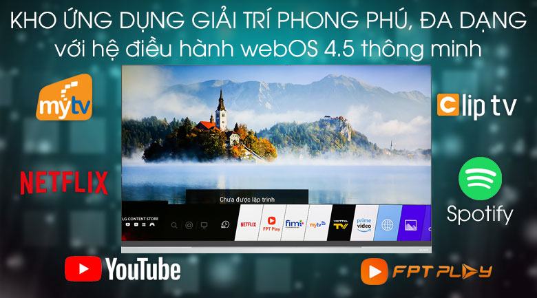 Smart Tivi LG với hệ điều hành WebOS 4.5 sở hữu nhiều ứng dụng giải trí trực tuyến phổ biến: Trình duyệt web, YouTube, Netflix, Zing TV, VnExpress, Film+, The Karaoke Chanel, mang đến trải nghiệm tuyệt vời cho người dùng.
