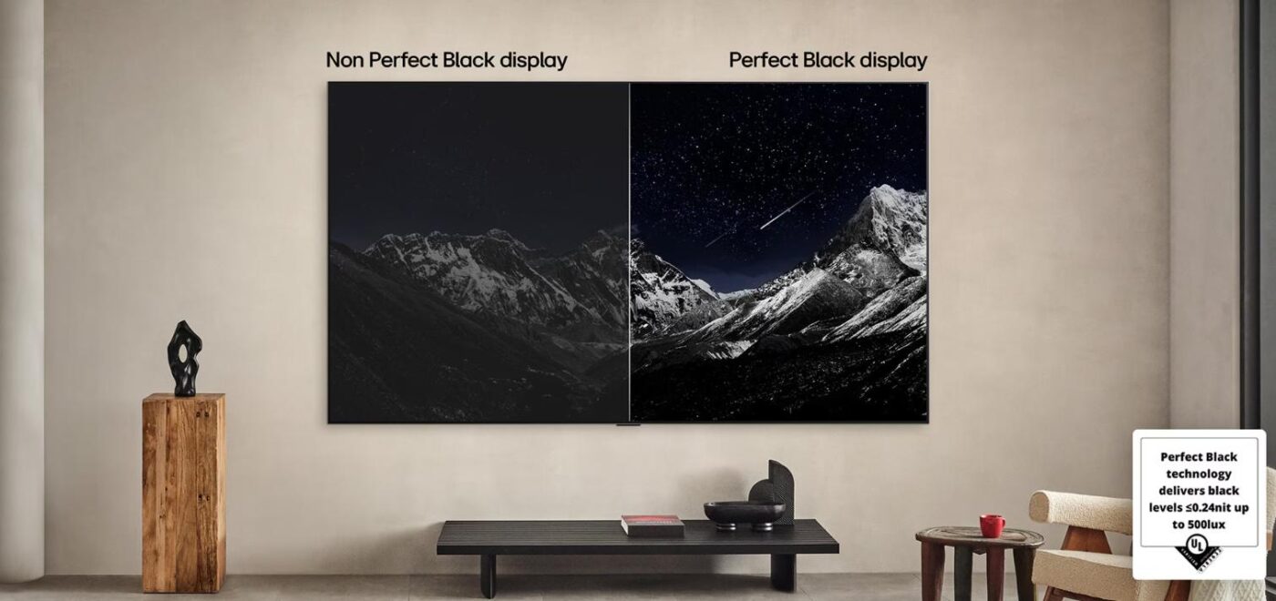 Tương Phản Tuyệt Đối, Bất Kể Sáng – Tối: Khám phá độ sâu, chi tiết và độ tương phản tuyệt mỹ từ chất lượng hình ảnh đẳng cấp. Nhờ công nghệ OLED độc quyền, dù không gian xung quanh sáng hay tối, Sắc Đen tuyệt đối (Black Perfect) luôn giữ được độ sâu hoàn hảo, mang đến hình ảnh rực rỡ, sống động với dải nhạy sáng đen và trắng rộng hơn.