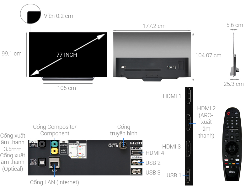 Smart Tivi OLED LG 4K 77 inch 77C9PTA có thiết kế viền kim loại siêu mỏng chỉ 0.2 cm cùng chân đế phủ kim loại mang đến vẻ sang trọng, phong cách trong nội thất hiện đại nhà bạn.
