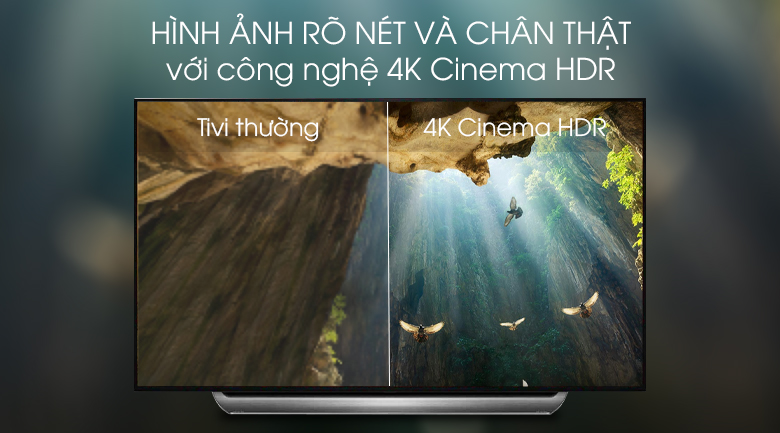 4K Cinema HDR của smart tivi LG giúp hình ảnh hiển thị rõ nét ở giữa vùng sáng và vùng tối với các định dạng HDR chính bao gồm Advanced HDR của Techncolor và HDR10 Pro.