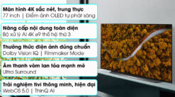 Kích thước màn hình lên đến 77 inch, mang đến cho bạn trải nghiệm như xem phim chiếu rạp tại nhà với các góc nhìn vô cùng hoàn hảo và chân thực. Phù hợp với các phòng khách lớn, phòng hội nghị, phòng họp,…
