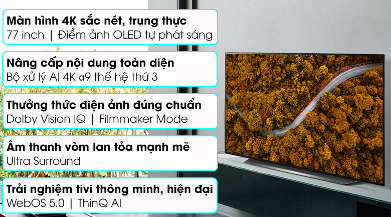 Smart Tivi OLED LG 4K 77 inch 77CXPTA có thiết kế vô cùng tinh tế và hiện đại. Không chỉ đơn giản là thiết bị công nghệ mà nó còn là một đồ dùng được dùng để trang trí cho không gian nội thất gia đình bạn thêm phần sang trọng.