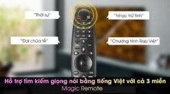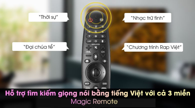 Magic remote hỗ trợ tìm kiếm giọng nói bằng tiếng Việt với cả 3 miền Bắc, Trung, Nam. Bên cạnh đó, tivi LG này được trang bị trí thông minh nhân tạo AI ThinQ. Công nghệ này có thể ghi nhớ các chương trình người dùng thường xem, từ đó đề xuất ra các chương trình phù hợp với sở thích người dùng, giúp người có thể tìm kiếm đơn giản và tiện lợi hơn. Và đặc biệt, với công nghệ này người dùng có thể dễ dàng điều khiển các thiết thông minh trong nhà thông qua tivi mà không cần phải mất nhiều thời gian để điều khiển cho từng thiết bị.