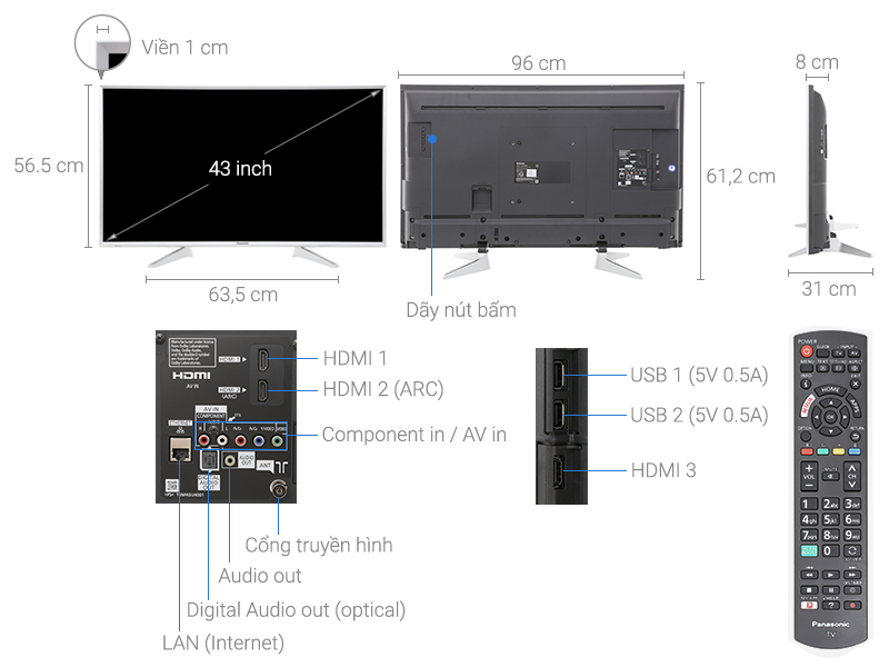 Tivi Panasonic Full HD màn hình IPS LED siêu sáng vượt trội giúp hình ảnh chân thực, sống động với góc nhìn rộng, tiết kiệm điện