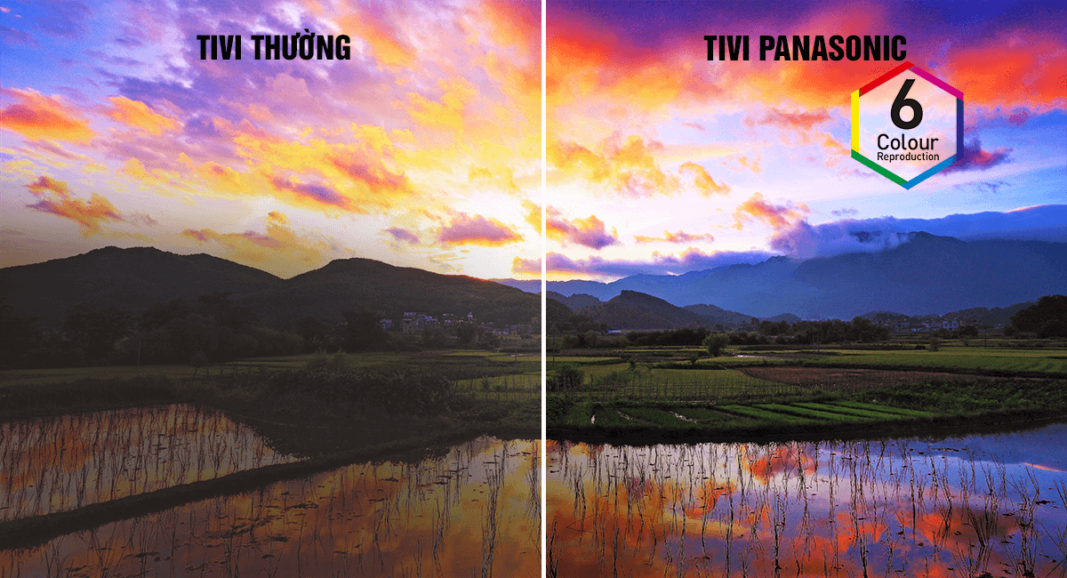 Tivi Panasonic 43 inch sở hữu công nghệ tái tạo màu Hexa Chroma Drive Pro, đây là công nghệ sử dụng 6 gam màu cơ bản giúp pha trộn và tạo ra hàng triệu đến hàng tỉ màu sắc riêng biệt. Từ đó, tivi cho màu sắc tự nhiên, rực rỡ.