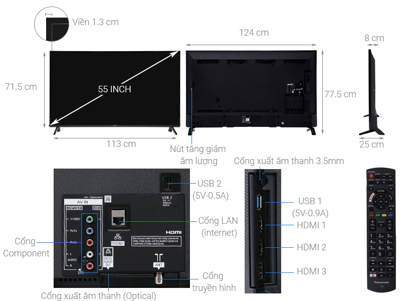 Tivi kích thước màn hình tivi Panasonic 55 inch phù hợp đặt ở không gian rộng như: phòng khách, phòng họp,…