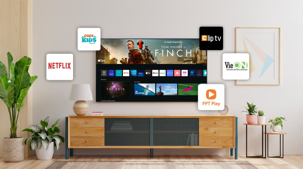 – Kho ứng dụng phong phú như: Clip TV, FPT Play, Galaxy Play (Fim+), MP3 Zing, MyTV, Netflix, POPS Kids, Spotify, Trình duyệt web, VieON, YouTube,… hứa hẹn có thể đáp ứng nhu cầu giải trí của gia đình bạn.