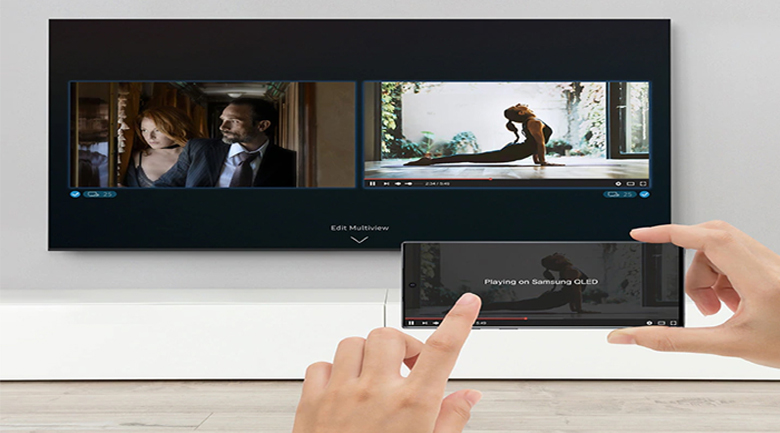 Với chế độ Multi View chia đôi màn hình TV, một bên sẽ hiển thị nội dung bạn đang xem và bên còn lại sẽ hiển thị màn hình điện thoại. Bạn có thể dễ dàng theo dõi mọi nội dung từ một màn hình duy nhất mà không bị sao nhãng.