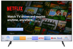 Kích thước màn hình tivi 55 inch lớn, thích hợp bố trí vào không gian nội thất khác nhau như phòng khách, phòng họp,… Ngoài ra với chân đế chữ V úp ngược sáng bóng, hài hoà với tổng thể thiết kế, giúp tivi đứng vững trên nhiều dạng mặt phẳng khác nhau.