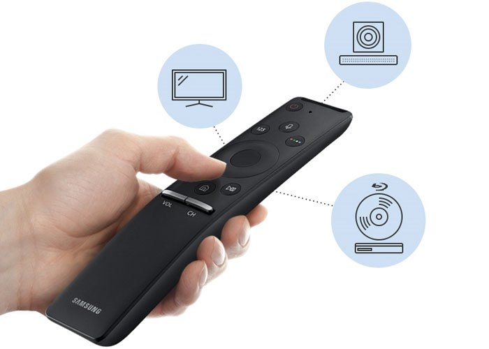 One Remote của tivi Samsung có thiết kế gọn nhẹ, ít nút bấm giúp bạn dễ dàng điều khiển tivi, đầu đĩa, đầu Bluray, đầu thu kỹ thuật số, loa,… khi kết nối với tivi Samsung qua cáp HDMI.