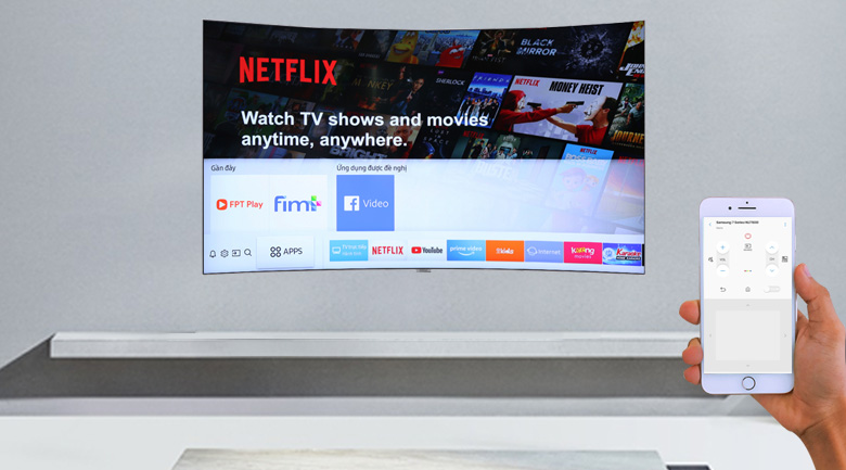 • Hỗ trợ chiếu màn hình điện thoại lên tivi và điều khiển tivi bằng điện thoại qua ứng dụng SmartThings.