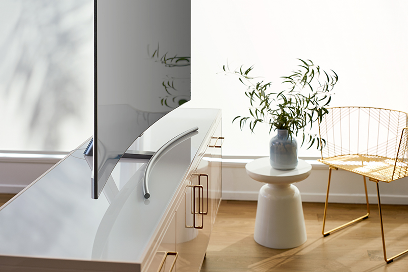 Smart Tivi QLED Samsung 55 inch QA55Q8CN sở hữu màn hình cong ấn tượng, mặt lưng kim loại giúp tivi nhà bạn không còn là một thiết bị giải trí mà còn là một tác phẩm nghệ thuật giúp tôn thêm nét thanh lịch cho gian phòng. Chân đế kim loại sáng bóng, mang lại sự sang trọng, chắc chắn cho tivi.
