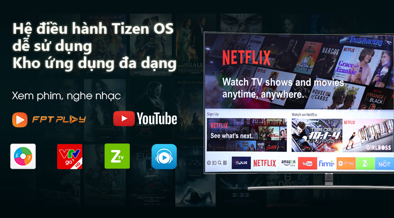 Tivi sử dụng giao diện trực quan, hiện đại, xử lý mượt mà cùng nhiều ứng dụng phổ biến có sẵn như YouTube, Netflix, FPT Play, Fim+,… hoặc có thể tải thêm Zing TV, Nhạc của tui, FPT Play, Spotify,… đáp ứng nhu cầu giải trí cho từng thành viên trong gia đình bạn.