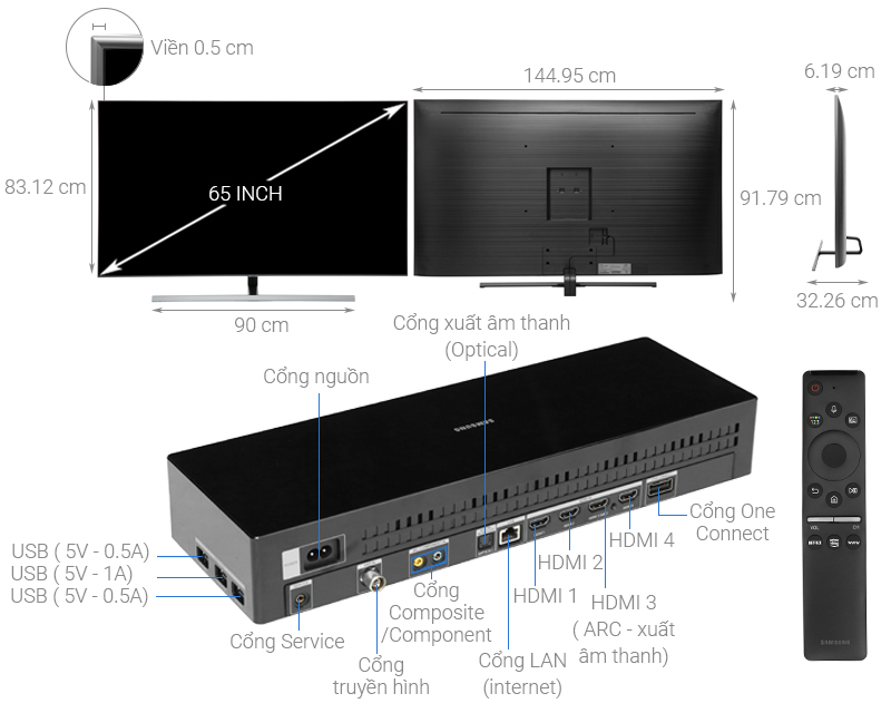 Với kích thước màn hình lớn, ngoài cách bố trí tivi đặt bàn như thông thường, bạn còn có thể treo tường tivi Samsung 65 inch như một bức tranh nghệ thuật độc đáo.