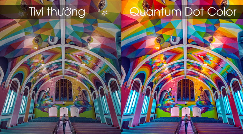 Ngoài khả năng hiển thị rõ nét những chi tiết màu sắc, độ tương phản rõ ràng, công nghệ này còn giúp tivi QLED tăng độ sáng vượt trội gần gấp đôi so với tivi thông thường. Nhờ đó, người dùng có thể dễ dàng cảm nhận được sự khác biệt rõ rệt giữa các cấp độ màu sắc từ màu đỏ đến màu cam, từ xanh đậm đến xanh nhạt.