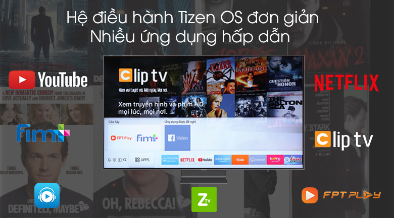 Smart tivi Samsung không chỉ sở hữu giao diện trực quan, hiển thị hết toàn bộ ứng dụng ra ngoài màn hình mà còn được trang bị nhiều ứng dụng giải trí phổ biến như: YouTube, FPT Play, Fim+, Nhaccuatui, Spotify, MyTV, ClipTV, Zing TV,… cho phép bạn thỏa sức xem phim, nghe nhạc, đọc báo sau những giờ làm việc căng thẳng.