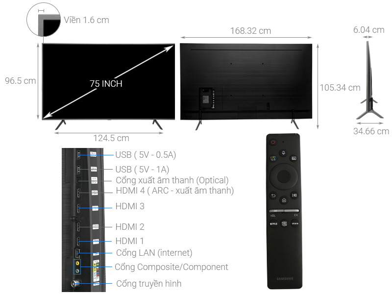 Thiết kế màn hình lớn, chiếc tivi 75 inch này sẽ mang đến trải nghiệm xem sống động, chân thực như đang diễn ra trước mắt.