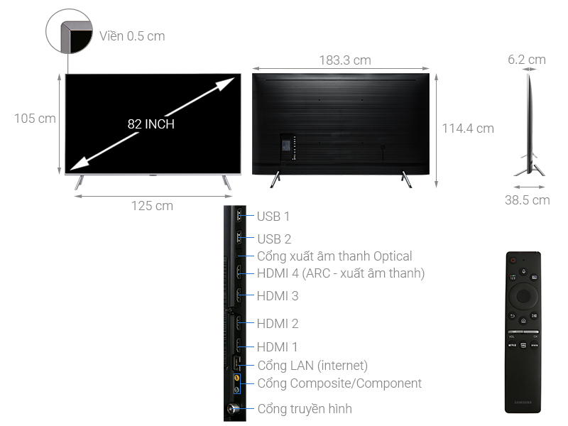 Kích thước màn hình khủng lên đến 82 inch chắc chắn sẽ giúp tivi Samsung 82 inch là lựa chọn hoàn hảo cho phòng chiếu phim ngay tại căn nhà của bạn.