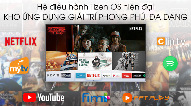 Tivi Samsung được cài đặt sẵn các ứng dụng phổ biến như Youtube, Netflix, trình duyệt,… hay bạn có thể tải thêm FPT Play, ClipTV, Fim+,… để trải nghiệm thêm.