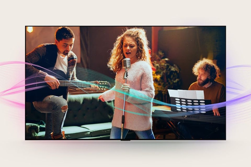 LG Smart TV QNED 75 inch 4K 75QNED80ASA mang đến âm thanh đắm chìm với công nghệ AI Sound Pro giả lập hệ thống 9.1.2 kênh. Nhờ thuật toán học sâu, âm thanh được tối ưu hóa để lan tỏa quanh bạn, tăng cường cảm giác chân thực. Bên cạnh đó, tivi còn tích hợp Al Clear Sound và Dynamic Sound Booster giúp cải thiện độ trong trẻo và tăng cường sức mạnh âm thanh.