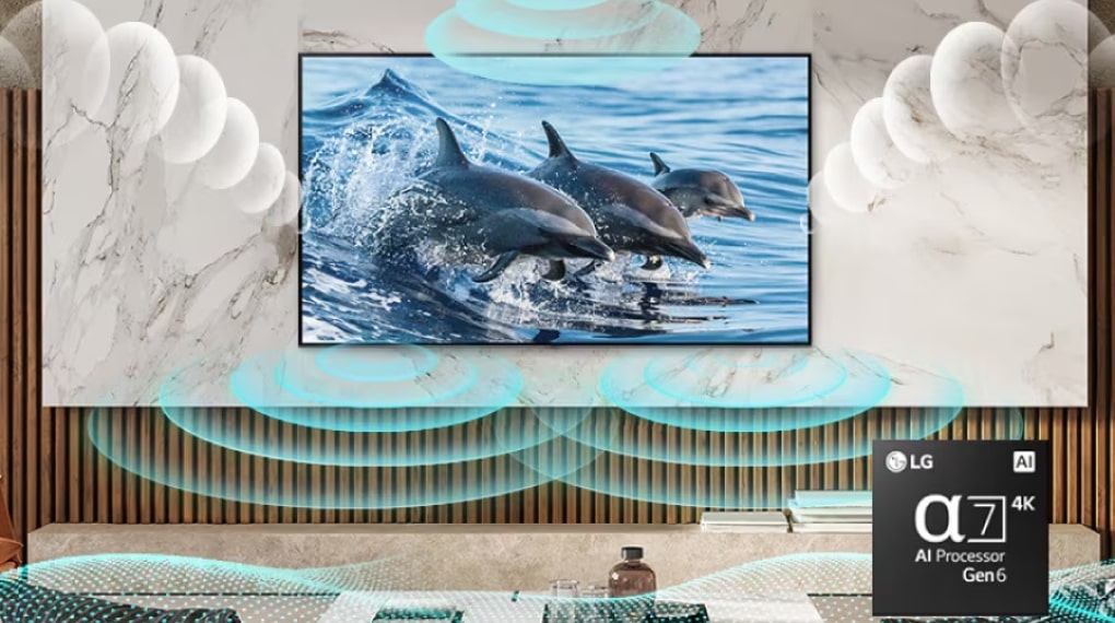 – Công nghệ AI Acoustic Tuning cho tivi điều chỉnh âm thanh tự động, khi âm thanh được thu thập từ Magic Remote sẽ tự phân tích các thông tin cùng tùy chỉnh của bạn để tối ưu chất lượng âm thanh phù hợp.