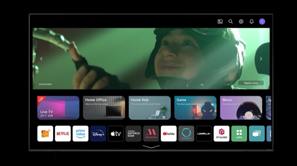 Tích hợp hệ điều hành webOS 23 với kho ứng dụng đa dạng, phong phú có nhiều ứng dụng phổ biến như: YouTube, Netflix, FPT Play, Galaxy Play, VieON,… đáp ứng tốt nhu cầu giải trí của người dùng, thiết kế giao diện trực quan, đẹp mắt dễ dàng thao tác sử dụng.