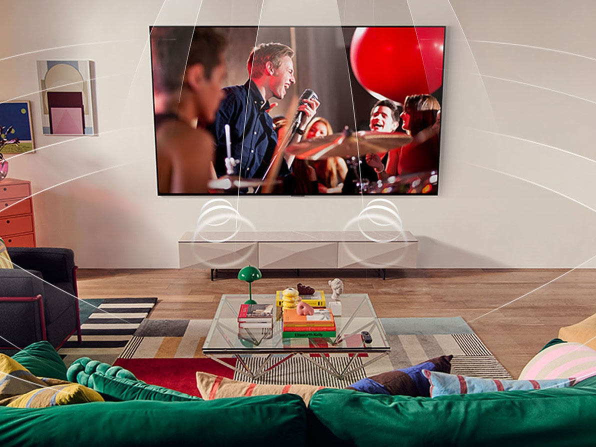 Tivi LG được trang bị công nghệ âm thanh vòm Dolby Atmos cho trải nghiệm 3D chân thực như đang ở rạp phim. AI Sound Pro (Virtual 9.1.2 Up-mix) giúp phân tích môi trường xung quanh và nội dung đang xem để điều chỉnh âm thanh phù hợp, tạo nên âm trường ấn tượng.