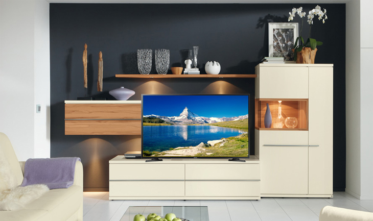 Tivi Samsung 32 inch cùng chân đế vững chắc phù hợp với không gian của phòng làm việc, phòng khách,… hay treo tường ở phòng ngủ.