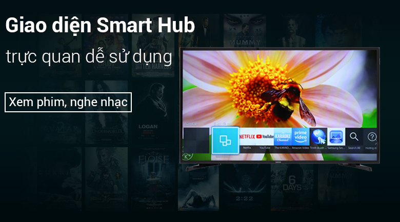 Tivi Samsung HD đáp ứng nhu cầu giải trí cơ bản của gia đình bạn với các ứng dụng được cài sẵn như: trình duyệt web, Netflix, Youtube,… ngoài ra bạn có thể tải thêm các ứng dụng khác như: FPT Play, Fim+, Spotify,…