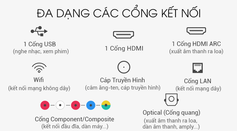 Tivi dùng được chuột, bàn phím, hỗ trợ nhiều kết nối thông dụng