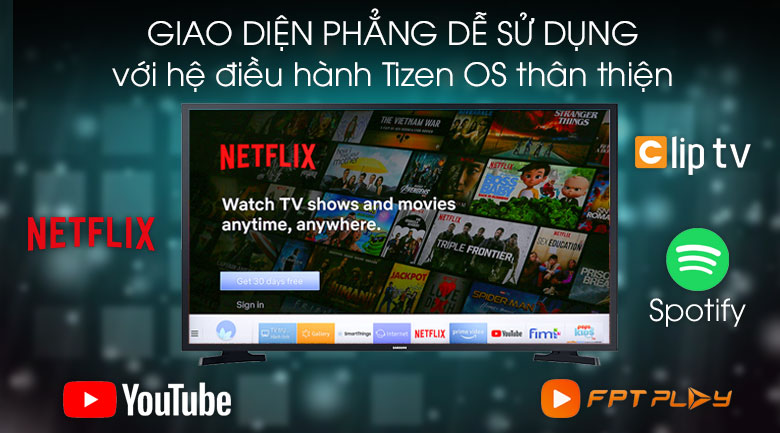 Đáp ứng nhu cầu giải trí cơ bản của gia đình bạn với các ứng dụng được cài sẵn như: trình duyệt web, Netflix, YouTube,… Ngoài ra, bạn có thể tải thêm các ứng dụng khác như: FPT Play, Fim+, Spotify,…