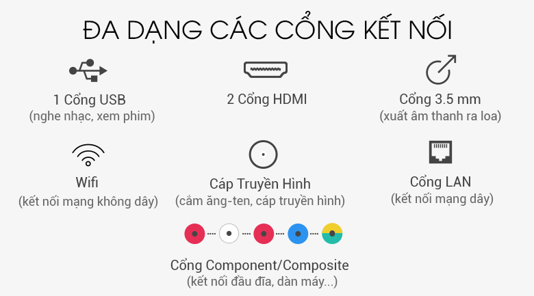 Tivi Samsung Full HD tích hợp đầu thu DVB-T2 giúp thu các kênh truyền hình miễn phí mà không cần phải dùng đầu thu. Lưu ý: Số lượng kênh phụ thuộc vào antena và vị trí địa lý của nhà bạn.