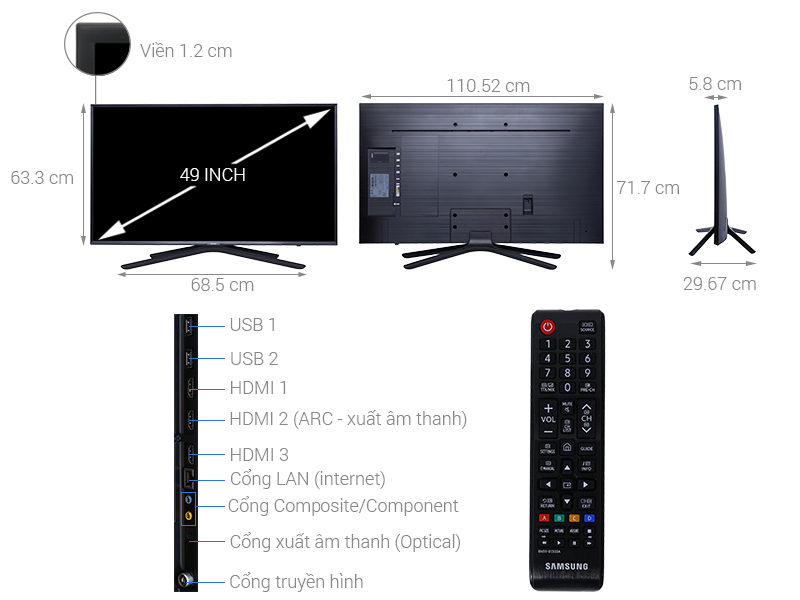Smart Tivi Samsung 49 inch UA49N5500 là mẫu tivi có thiết kế sang trọng với viền màn hình siêu mỏng cùng chân đế bằng nhựa vững chắc mang đến vẻ đẹp đơn giản và hòa hợp với bất kỳ không gian nội thất nào.