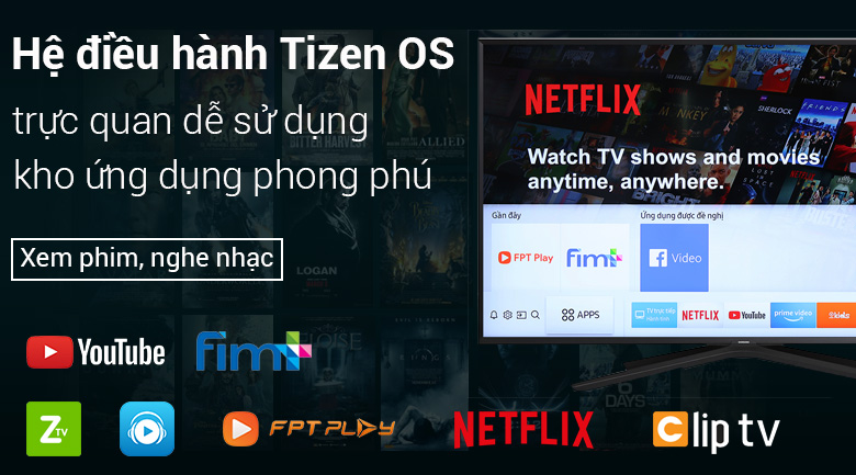 Tivi dùng được chuột, bàn phím này sử dụng giao diện trực quan, hiện đại cùng kho ứng dụng phong phú như: YouTube, Netflix, FPT Play, Fim+,… hoặc có thể tải thêm Zing TV, Nhạc của tui, FPT Play, Spotify,… đáp ứng nhu cầu giải trí cho từng thành viên trong gia đình bạn.