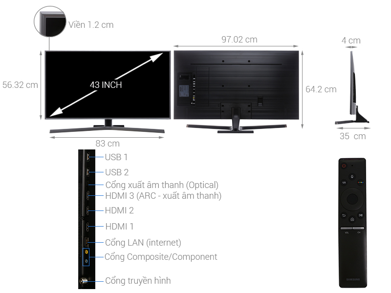 Smart Tivi Samsung 4K 43 inch UA43NU7400 với thiết kế viền màn hình mỏng 1.2 cm đi kèm chân đế hình chữ V vững chãi giúp tôn thêm nét thanh lịch, tinh tế cho không gian phòng đặt.