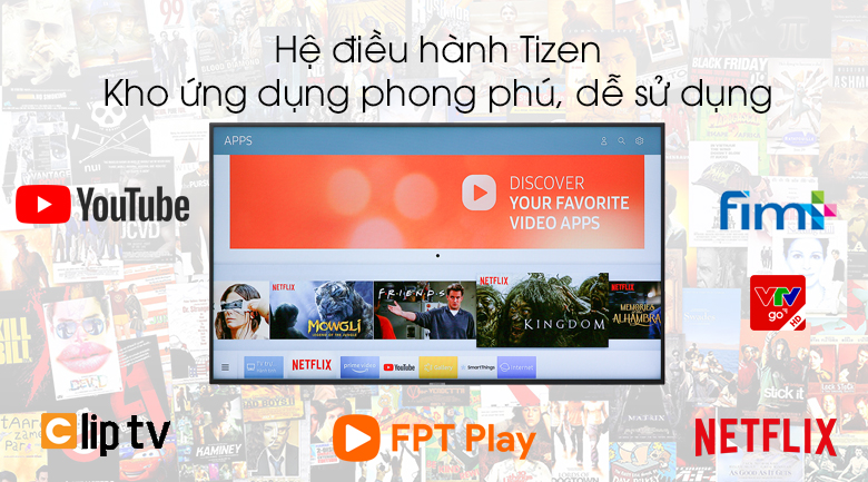 Tivi Samsung sở hữu giao diện màn hình chính đơn giản, thân thiện người dùng. Kho ứng dụng giải trí phong phú với YouTube, Netflix, trình duyệt web, Nhaccuatui, Spotify, Apple TV, MyTV, ZingTV, FPT Play, Clip TV, Fim+ cho bạn thoải mái nghe nhạc, xem phim, xem chương trình giải trí, thể thao, hát karaoke thư giãn mọi lúc.