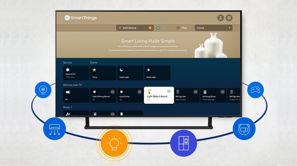 – Ứng dụng SmartThings như một công cụ hỗ trợ kết nối, điều khiển tivi và các thiết bị trong nhà.