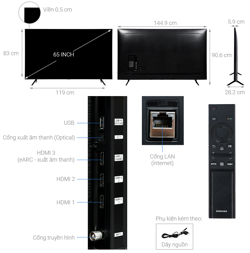 Tivi Samsung 65 inch thoải mái sử dụng cho các phòng khách lớn gia đình, phòng ngủ, phòng họp…