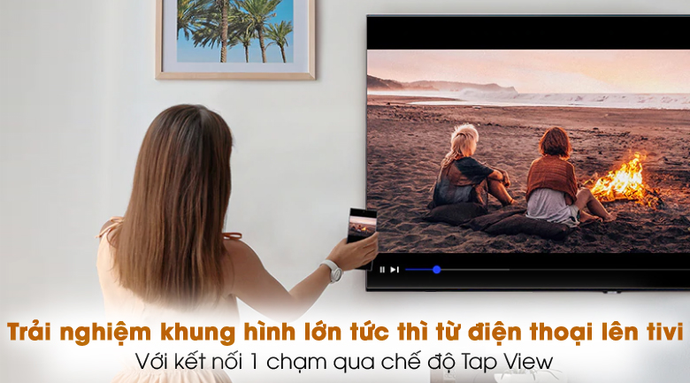 Ngoài ra, còn có thể trình chiếu màn hình điện thoại Android lên smart tivi qua tính năng Tap View. Với tính năng này, hình ảnh được chuyển tiếp từ màn hình điện thoại thông minh, máy tính bảng hay đồng hồ thông minh lên màn hình tivi chỉ với 1 thao tác chạm nhẹ lên màn hình, rất tiện lợi cho nhu cầu trình chiếu nhanh.
