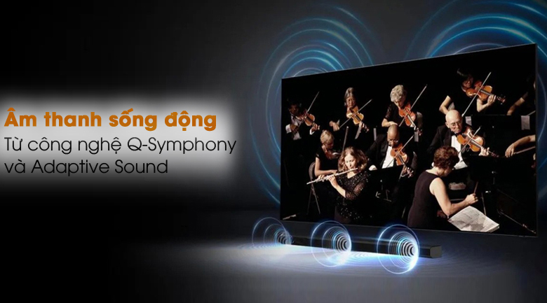 Đắm chìm vào không gian âm thanh sống động, mạnh mẽ và chi tiết với công nghệ Q-Symphony và Adaptive Sound