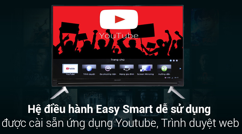 Tivi Sharp 50 inch LC-50SA5500 chạy trên hệ điều hành Easy Smart cùng 2 ứng dụng được cài đặt sẵn: Youtube, Trình duyệt web cho phép bạn đọc báo, nghe nhạc, xem phim,… để thư giãn sau những giờ phút làm việc căng thẳng.