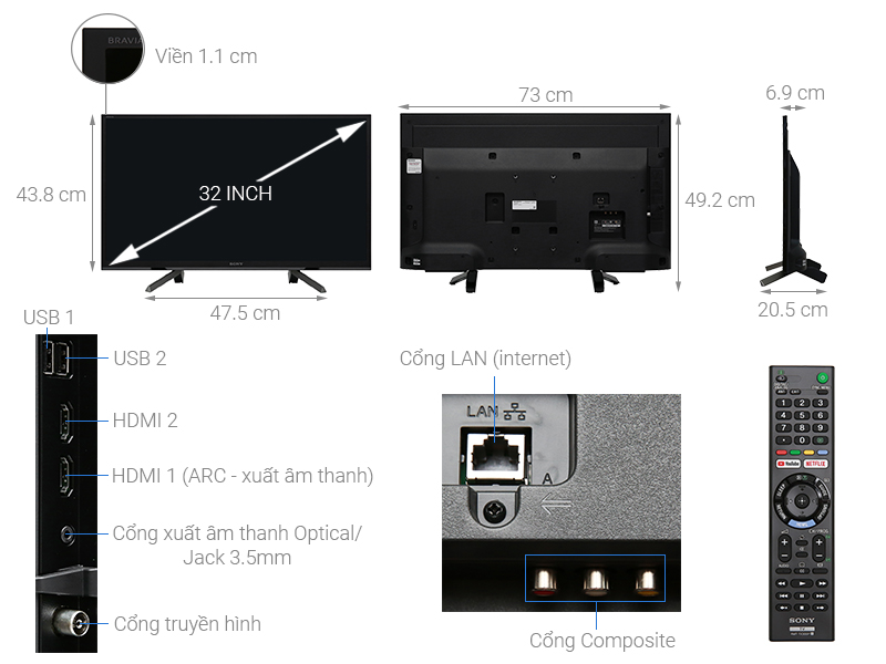 Smart Tivi Sony 32 inch 32W610G sở hữu kiểu dáng chắc chắn, màu xám đen hiện đại, hài hoà vào không gian phòng khách của bạn.