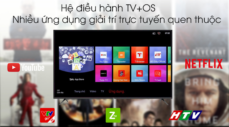 Smart tivi TCL được trang bị sẵn các ứng dụng giải trí phổ biến: Trình duyệt web, Youtube, Netflix giúp bạn xem phim, nghe nhạc sau những giờ làm việc căng thẳng.