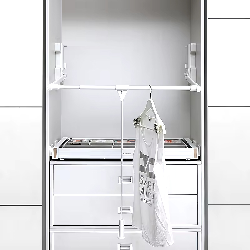 Rất nhiều chiếc tủ áo hiện nay được đóng cao sát với trần nhà, một là để tận dụng tối đa không gian phía trên, hai là để hạn chế chuột, gián, côn trùng, bụi bẩn. Từ thực tế đó, nhiều loại phụ kiện tủ áo kèm theo như giá mắc quần áo di động Eurogold EUA11080 được ra đời nhằm giúp gia chủ tận dụng tối đa khoảng không gian phía trên cao mà bình thường chỉ để làm kho chứa đồ. Với thiết kế thông minh cho phép thanh suốt treo có thể nâng lên hạ xuống chỉ bằng một tác động nhẹ, đây thực sự là một sự lựa chọn tuyệt vời với nhiều chiếc tủ cao sát trần nhà như hiện nay.
