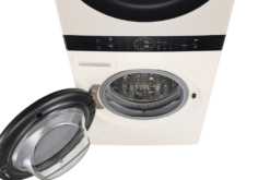 – Bảng điều khiển cảm ứng chỉ dẫn tiếng Việt kết hợp màn hình hiển thị sắc nét, thiết kế trực quan và nằm ngay ở vị trí trung tâm, bố trí cao hơn bảng điều khiển của 2 máy giặt và máy sấy đặt chồng lên nhau đến 85 mm. Nhờ đó người dùng dễ dàng tiếp cận và tùy chỉnh chương trình giặt, sấy linh hoạt.