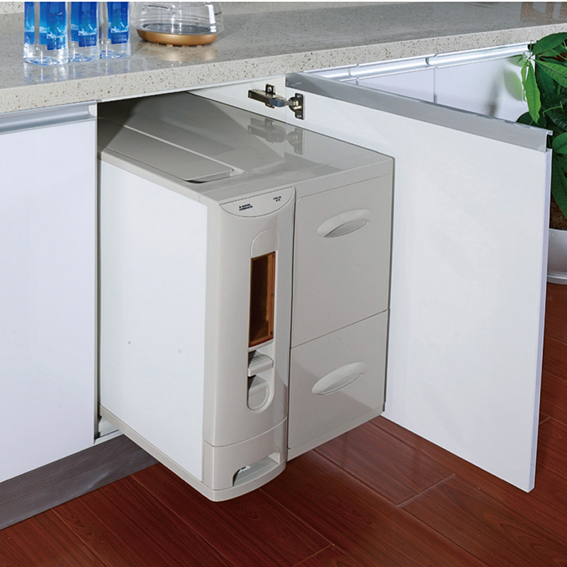 Với 3 khoang đựng gạo riêng biệt, độc lập giúp bạn có thể để được nhiều loại gạo khác nhau mà không sợ bị gạo lẫn lộn vào nhau. Với thùng gạo Eurogold B45 âm tủ này bạn có thể lấy gạo một cách linh hoạt, vừa có thể lấy gạo bằng cách nhấn nút và lấy gạo từ khay hứng, vừa có thể lấy gạo bằng cách đong thủ công.